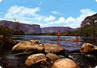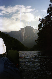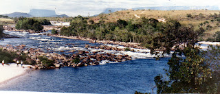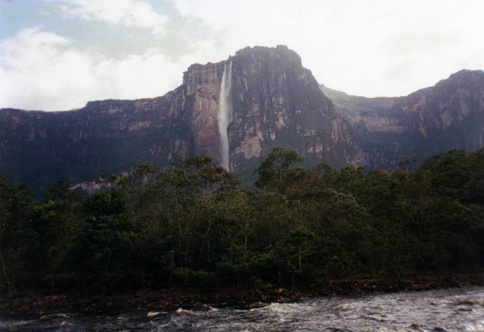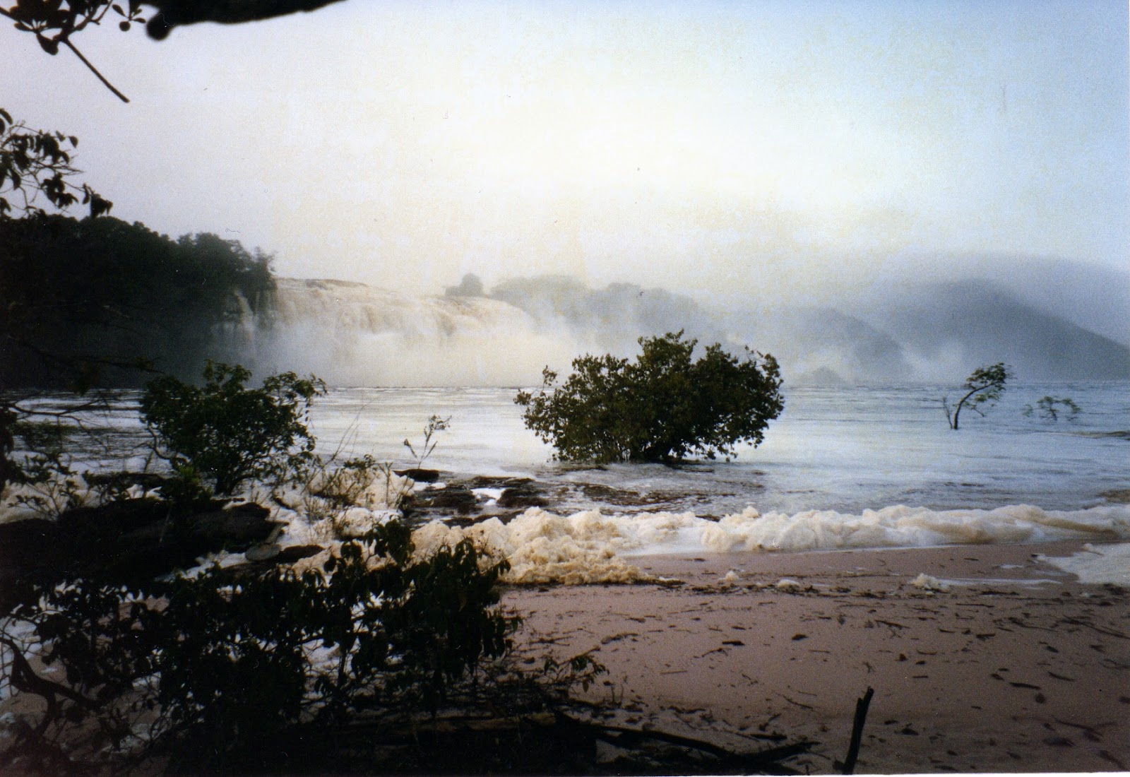 Anatoly y su encantadora esposa, fueron quienes en ese momento por los años 80 nos organizaron nuestro primer viaje al Salto Ángel. Era una meta que tenía en ese momento. Este es el río Carrao abajo. En la tarde que llegamos nos asignaron una pequeña habitación en forma de churuata, donde podíamos contemplar esta vista y el sonido que se podía oir desde acá. En la mañana siguiente comenzaría o continuaría nuestra aventura en una barca por el río Carrao arriba y luego el río Churum Merú, quedándonos para acampar esa noche en la isla de La Orquídea. Desde que emprendimos el viaje en la barca desde el Carrao hasta el salto Ángel, fue de unas ocho horas de muchísima aventura. Atravesaríamos algunos rápidos que se forman en estos ríos por el caudal que tienen y en otros momentos nos bajaríamos de las barcas, para continuar andando por mas de una hora y contemplando este extraordinario paisaje; hasta encontrar de nuevo la barca, donde nos estaban esperando los motoristas de la embarcación, quienes son indígenas de la zona y conocen estos ríos como la palma de su mano.